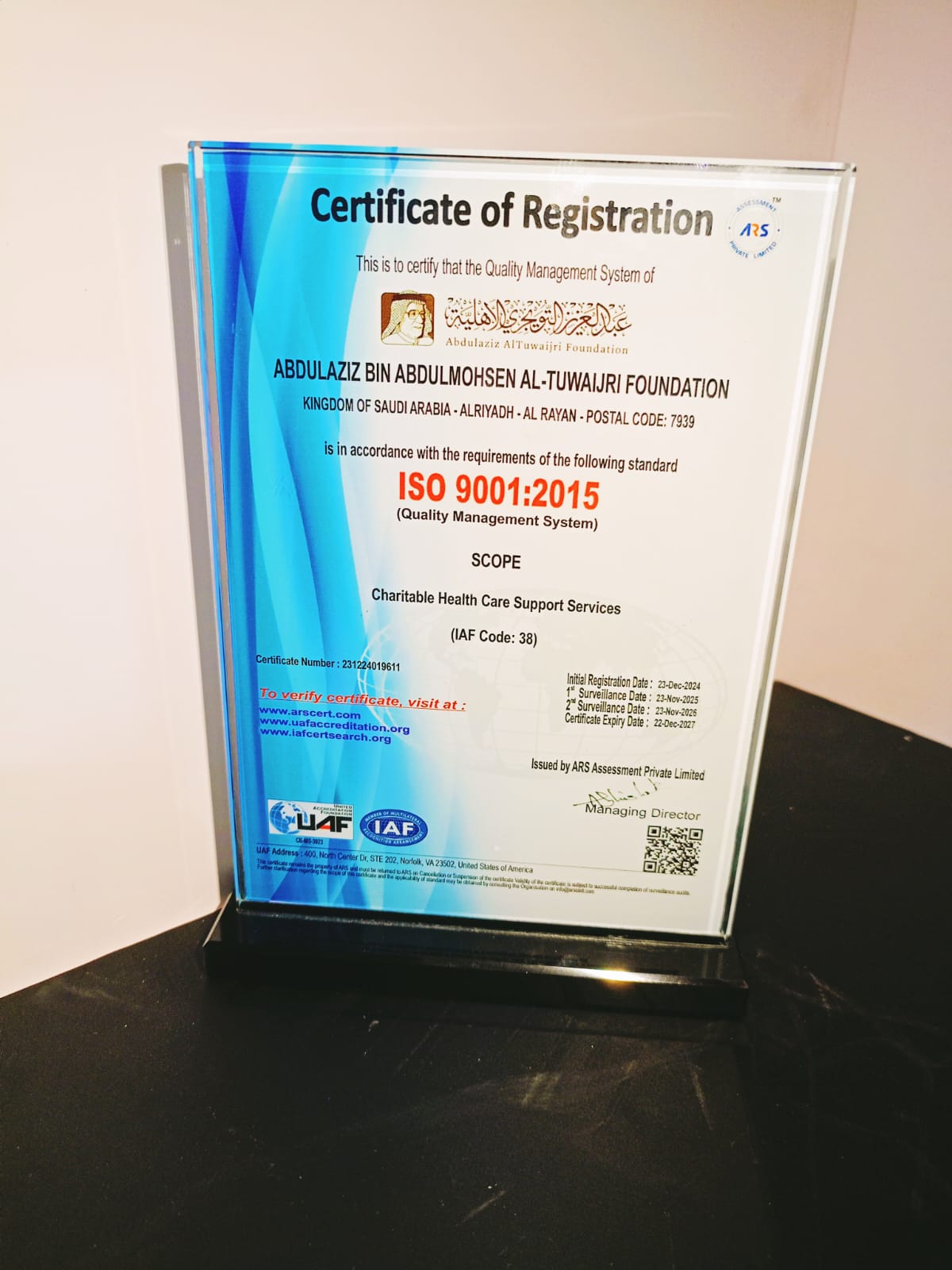 درع كريستال فاخر 14×21