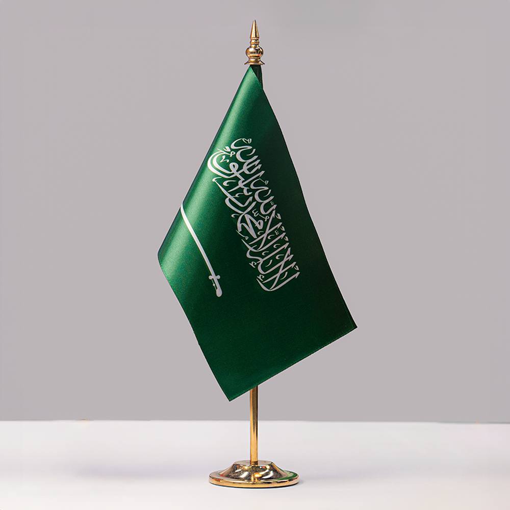 علم المملكة العربية السعودية هو رمز وطني ذو دلالة تاريخية ودينية عميقة. إذا كنت ترغب في عرض علم السعودية في مكتبك، يمكن اختيار المقاس الذي يتناسب مع المساحة المتاحة، مع التأكد من احترام المعايير الثقافية والدينية عند عرض العلم.