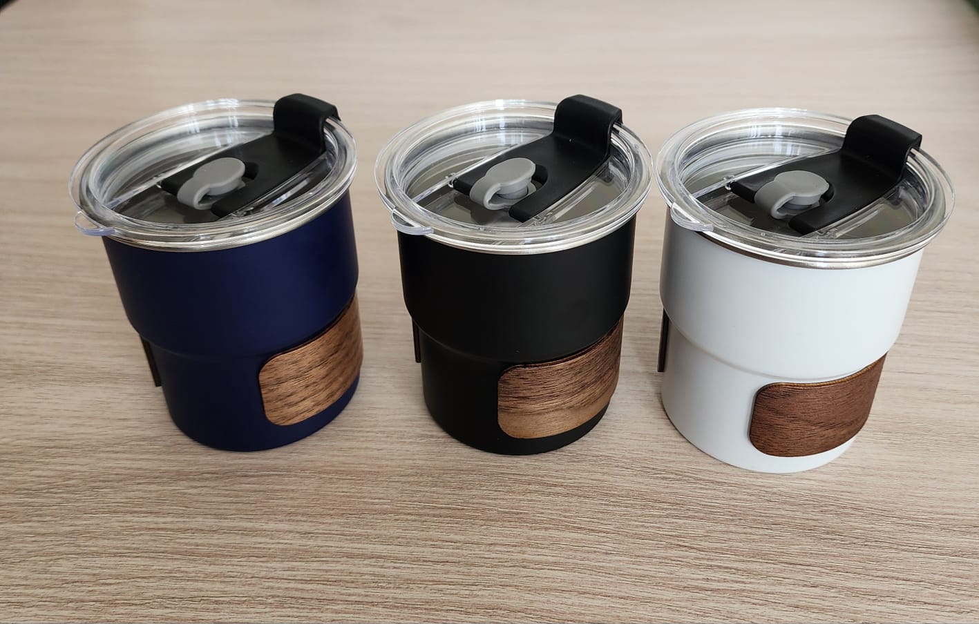 كوب حافظ للحرارة بغطاء وديكور خشبي مع الطباعة