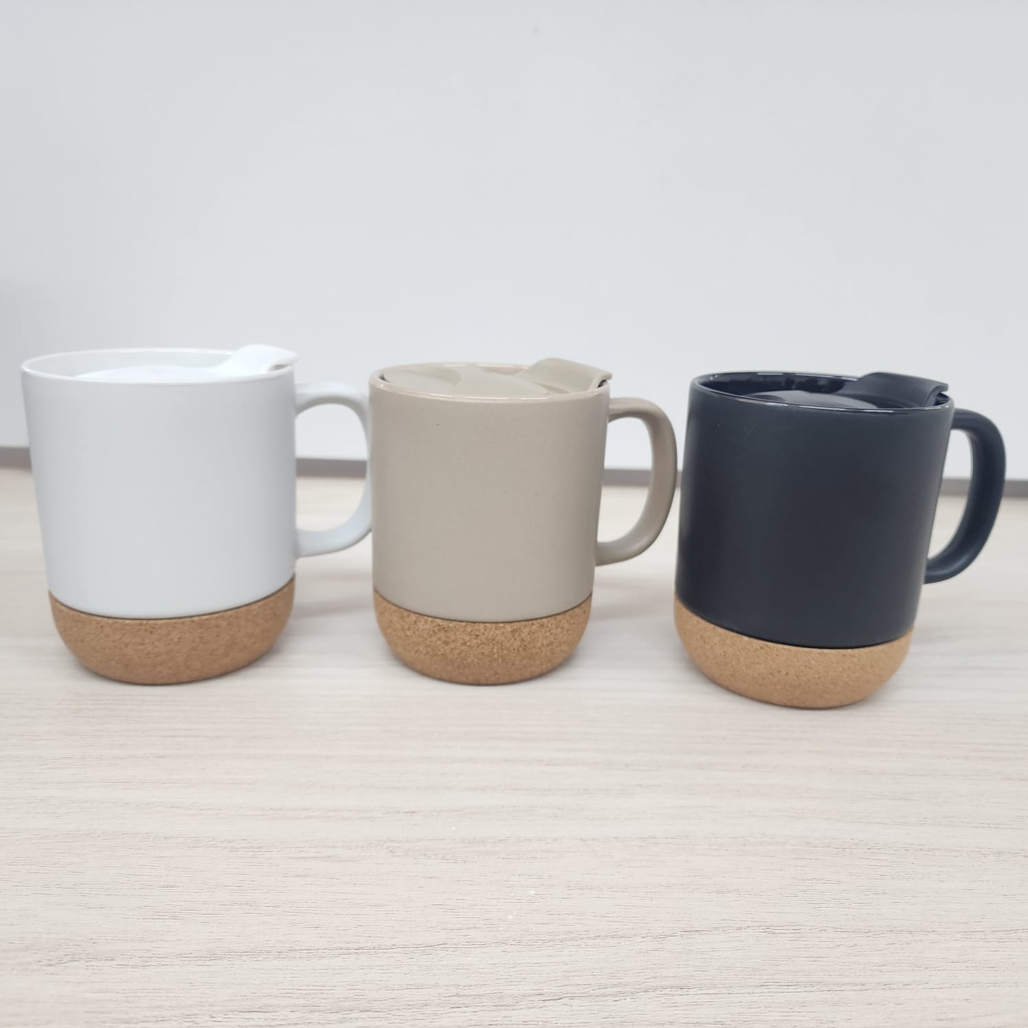 كوب خزفي مع قاعدة فلين وغطاء ( ابيض – اخضر – اسود – كحلي )